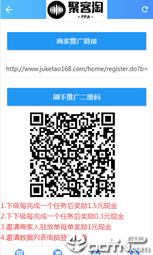 推广奖励:2级奖励,徒弟1.5元,徒孙0.3元
