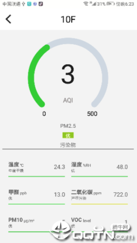 2.空气质量监测—— 实时监控温度、湿度、甲醛、二氧化碳、挥发性有机物、PM2.5颗粒物、PM10颗粒物等多种有害物质及日常数据监测。