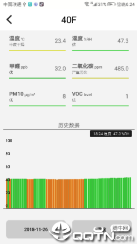 并且设立有历史存档,方便做到历史数据的随时回顾与对比,历史数据可做到每小时统计与每天统计,以柱形表的形式显示,一目了然;此项监测统计信息便于用户了解办公环境及家居环变化、进展等信息。