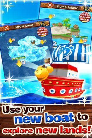 小熊钓鱼Kuma Fishing是一款很好玩的3d休闲游戏,游戏操作很简单,快和KUMA熊一起去抓鱼吧!捕捉一切你所看到的鱼类!争取抓到最大的鱼!使用钓鱼获得的金币来购买更好的鱼竿和鱼饵,不需要复杂的控制,只要眼疾手快,游戏卡通可爱的画面很适合小朋友们玩。