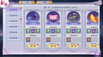 进阶副本是人物成长、坐骑进阶、神兵升级等道具的重要来源之一。选择副本→进阶副本,打开副本界面。