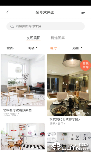 ——海量装修效果图不仅激发你的美学创意,而且帮你找到自己喜欢的装修风格;精选各类风格、空间、局部等美图,让你规避装修缺陷,有章法地装修,空间才更美。