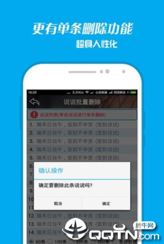 空间说说删除手机版,一款专为QQ空间打造的说说批量删除工具,不仅支持多个说说的删除,还支持单个说说的删除,方便用户整理自己的QQ空间,有需要的小伙伴欢迎前来下载。