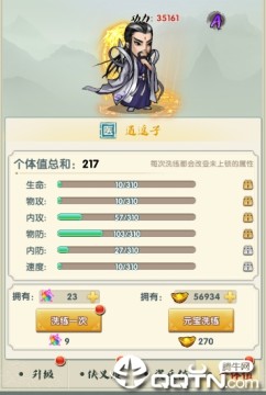 6项个体值中每项的最大值为310,如果少侠想要获得高战力高评级的侠客,就可以进行洗练将需要的属性洗到理想的数值