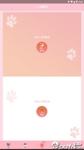 人猫交流器狗语是一款动物语言翻译软件。划时代的突破!猫什么那么傲娇?狗为什么这么憨厚?世纪未解之谜都在这里解开!人猫狗语言在线翻译,等你来倾听~~
