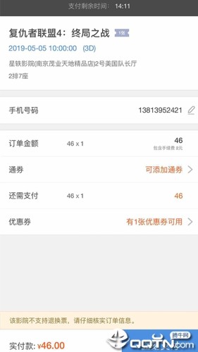 还可提供电信话费代扣、电信积分、翼支付、微信、支付宝、通券等多种在线支付方式,省去了电影院排队买票的诸多时间和麻烦。