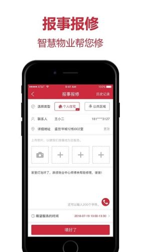 随时随地可以在线进行报事报修操作,手动填写信息即可;