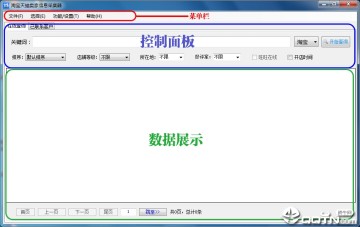 软件的主界面由“菜单栏”、“控制面板”、“数据展示”3个部分组成;