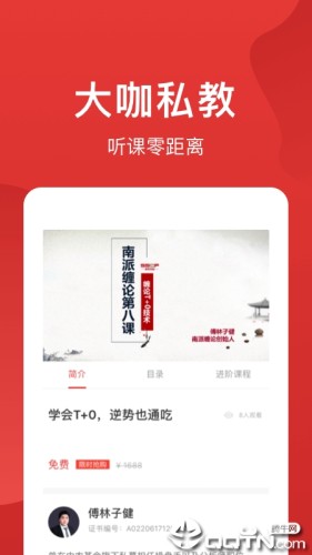 【特色课程】:近百名投顾组成的专家团,将众多繁杂的碎片化股市技巧形成实用的交易体系,相授于众;分为入门、进阶、高手的不同难易度的,技术分析、价值分析、量化分析的不同类别的股市课程,用户可根据对股市的认识程度来学相应的课程,以提升炒股水平。