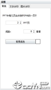 2. 支持将PPT中的多页幻灯片合并为PDF文件中的一页,可以设置合并时的间距和背景底色;