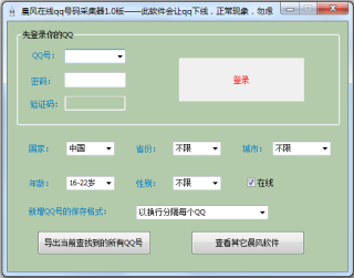 1、可以按照国家、省份、城市、年龄、男女等不同条件采集在线(或不在线)qq号码列表。