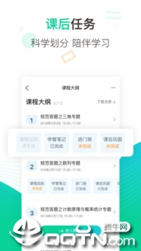 【学习任务】针对学生的上课情况,系统自动推送差异化学习任务,帮助学生明确任务优先级,高效完成课后落实。