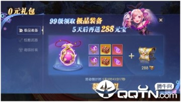 角色等级达99级免费领取极品装备,开服5天再送288绑元,领取完免费极品装备后可领取
