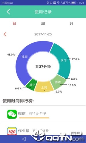 3、关怀小孩手机使用记录,是否有沉迷游戏的趋势。