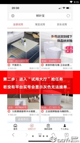 2、第二步:进入“试用大厅”抢任务