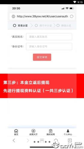 先进行提现资料认证(一共三步认证);