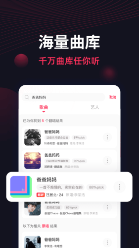 * 搜索优化,想听的翻唱及原唱一搜即有;