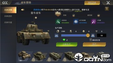 战车营地是制造战车的建筑,越高等级的战车营地,一次制造战车的数量上限越高,存在的战车会产生部队消耗,消耗额外的石油。战车属于突击型能量攻击兵种,也分为6个阶的战车,每高一阶段的战车,属性更好。战车可以进阶和升星,提高战车属性,克制火炮,被克制的是坦克。