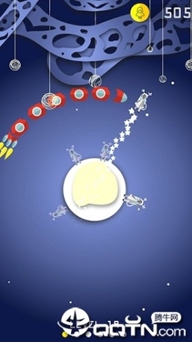 点击屏幕,宇航员将立即飞向正在轨道上旋转的火箭。