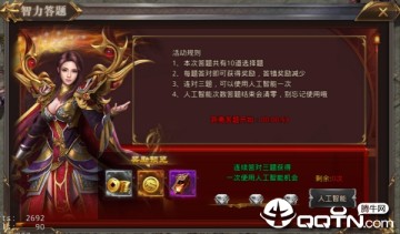 一共有10道题,每题的答题时间20秒,答对可以获得奖励,答错获得一半奖励,也可以花费钻石获得双倍奖励。
