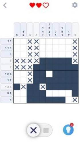5、玩家需要给交叉的方块涂上颜色,以揭示隐藏的图案。