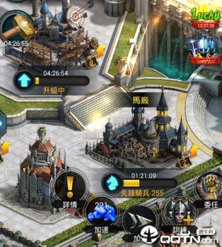 我们再来看部队兵种,简单来说就是我们的军队,可以说是我们城堡最为重要的东西,军队的强大与否,军队的战力以及兵力数量总会决定我们后面战争中的表现,然后我们能够阻止一个强大的军队也不是件容易的事儿。在初期我们能够建设的兵种有步兵、骑兵、弓兵、战车。而且每次训练士兵的数量和训练速度由行军帐篷的数量和等级有关。作为前期新手,我们至少需要将兵营、马厩、靶场、战车工坊、行军帐篷升到4-5级,行军帐篷至少创建4个才能满足前10级的需求。