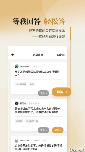 提供税务师和客户一对一交流的平台,高效解答客户的疑惑,收取酬劳。