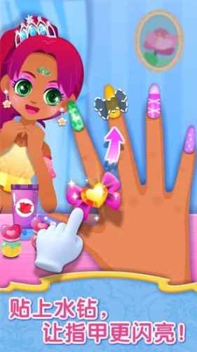 发型也是很重要的哦,蓬松大波浪、俏皮双马尾,公主适合哪种发型呢?漂染流行的酒红色,喷洒亮片会更好看!当然还要涂上指甲油,点缀贴纸、珠光水钻,让指甲闪耀起来!