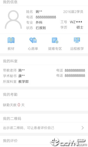 对带教老师与各种角色进行评价,跟进自己的轮转进度等。
