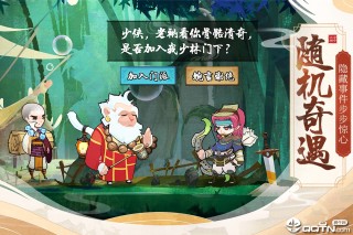 游戏的核心玩法,就是探索幻境过图。玩家挑选3名武侠进入幻境地图少林、华山、古墓等,幻境地图是随机的,是非常特色的Roguelike玩法,随机事件、随机武侠事件、随机敌人、随机材料等。玩家需要通过地图上的各种随机时间,然后达到地图的最末端,对抗强大的带头大哥,打败了带头大哥才能进入下一关。
