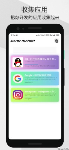 卡片制造商适合开发者使用,因为它是一款可以将你的应用生成好玩的表情包,附带一个二维码,在做应用推广的时候,既有趣整个界面有比较的简洁,而且别人只需要扫描你的二维码就可以直接跳转下载,不用担心长篇的介绍没人看了。