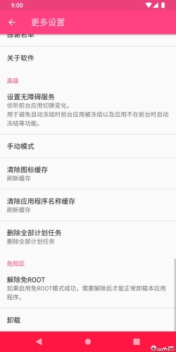 免ROOT模式用户可通过"更多设置"-"解除免ROOT"卸载