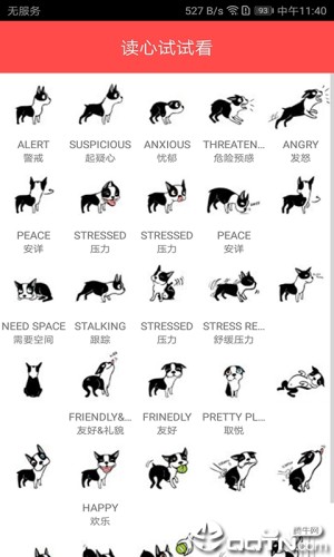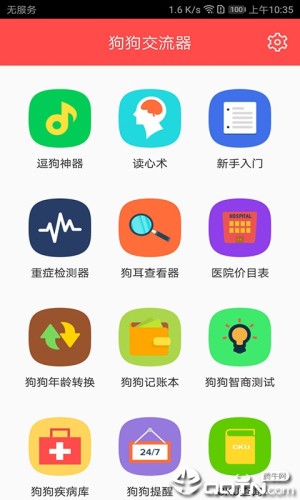 狗狗交流器app,提供了逗狗神器、读心术、新手入门、重症检测器、狗耳查看器、医院价目表、狗狗年龄转换、狗狗记账本、狗狗智商测试、狗狗疾病库以及狗狗提升等众多与狗狗交流的功能。