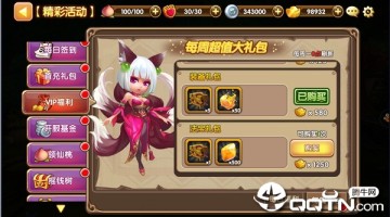 除了每日福利外,VIP福利中还有一个每周礼包活动,此活动内容每周一零点刷新,刷新后的道具物品不固定,但是每次刷新都有相应的装备礼包、法宝礼包等可以购买,大量极品紫色、橙色装备碎片以及完整的橙色超强法宝都可以在这些礼包中开出来,如此给力的礼包,自然不可错过!