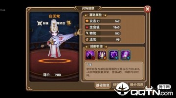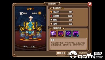 技能分析:在技能里,魔盾可以为自己队友全部都增加一个护盾,增加防御力,降低受到的伤害,还会有两个攻击技能,来保持一定的战斗力,加上还有一个为自身增加闪避率的,来闪避掉普通小怪的攻击而在装备里,还可以装备破霞戒,九凝符,这两个 法宝获得缘分属性增加,培养这些装备的同时,就可以让这英雄更厉害了
