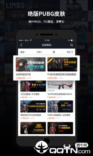 饰品包括DOTA2、CS:GO、PUBG、H1Z1等热门饰品,