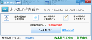 若水GIF动态截图是一款用于录制指定范围内屏幕的图像并将之保存为GIF文件格式的实用软件,软件操作非常简单您只需要一键选中截图方式即可快速的进行GIF动态图的截取,欢迎下载使用。