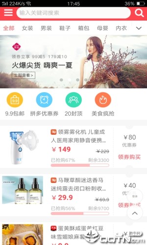 2、女装、男装、鞋子、箱包、母婴、内衣等各种正品轻松购;