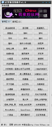 QT米饭音效助手是史上最全最强的Mc音效器,提供了数十种类别的音效使用,包括报点、学动物叫、游戏音效、电影音效等,是主持人的必备音效软件,非常具有娱乐性,而且完全免费哦,赶紧下载体验吧。
