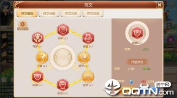 除了符文精华外,所有类型的符文都可以消耗符文经验提升符文等级,符文升级后将会提升其加成的属性,分解属性符文、符文精华均可产生一定数量的符文经验,分解双属性符文还能额外获得魂晶。