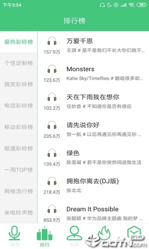 田馥甄、刘德华、林宥嘉、五月天、梁静茹、EXO……热门歌曲铃声、彩铃(炫铃),每日更新1000+