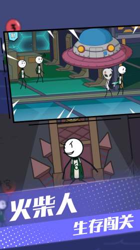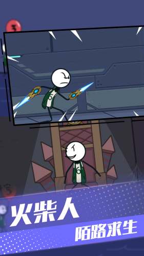 一款精彩趣味的冒险闯关手游,这款游戏以经典的火柴人为主人公,玩家灵活操控着角色进入随机的场景中,向着终点出发将一路上所遇到的敌人们全部消灭掉,尽快逃离出去即可。