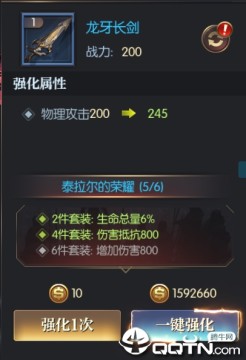 每个装备可进行强化、附魔、装备宝石,强化宝石附魔可提高装备属性。