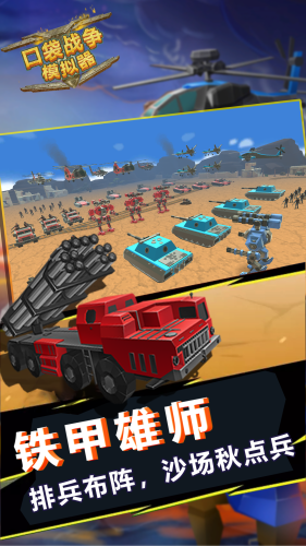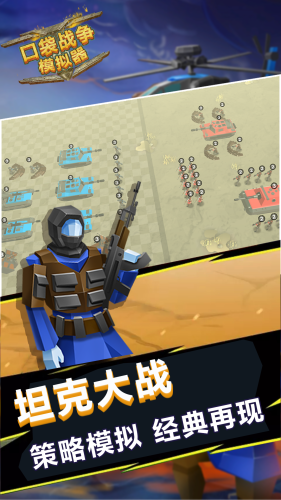 口袋战争模拟器,手机端的模拟战争游戏。玩家作为指挥官加入战场,解锁各个兵种组建军团,升级坦克装甲武器装备,策略指挥战争完成一场场胜利吧。