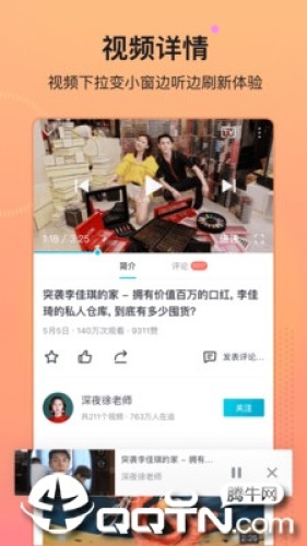 - 视频详情:视频下拉变小窗,边听边刷新体验