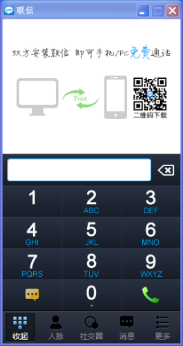 注:通话双方均在安装并运行UM联信的情况下才可以进行免费通话,反之则按普通电话通话标准由运营商收取通话费