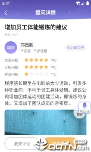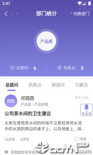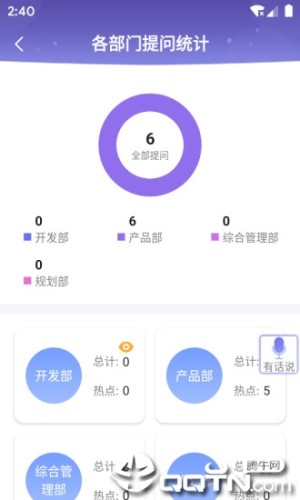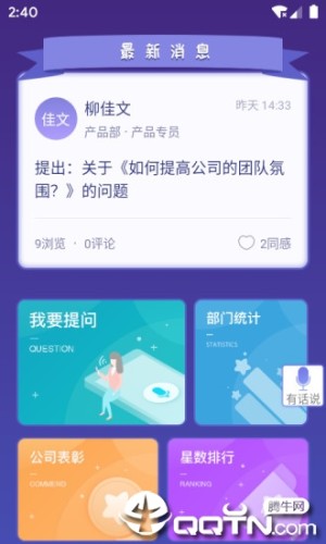 主要功能有,企业的提问管理、部门统计、公司表彰、星数排行。