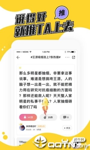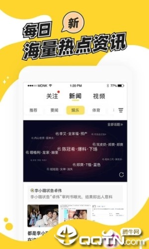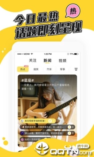 热推app是一款综合新闻资讯客户端。热点头条、要闻、明星、体育、娱乐、健康等新闻一网打尽,更有语音评论功能,让你场景式互动,说出自我。
