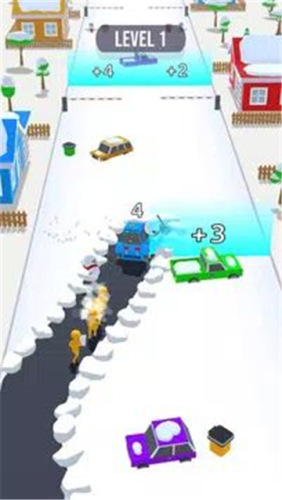 1、操控你的铲雪车为其他车辆清理出一条安全通道,到达终点获得胜利