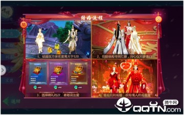 结婚流程:满足以上两个条件后即可通过情缘界面前往结婚了,流程如下